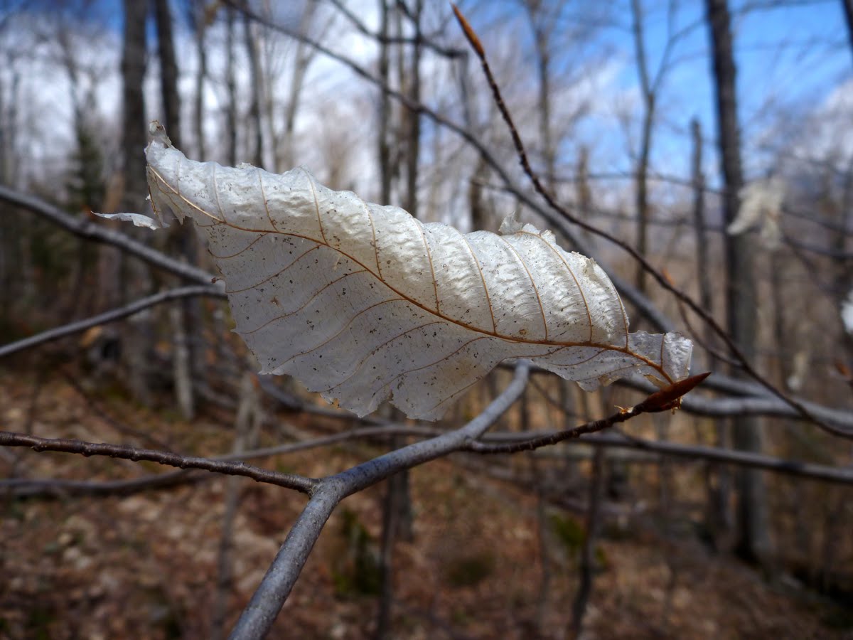 Starting uphill we traversed an extensive grove of sugar maples (Acer saccharum) that had been selectively cut 75 or 80 years ago. The clouds were breaking up and the sunlight gradually intensified making the morning a lot warmer then when we started out.