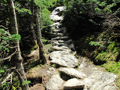 A couple starting up the steep section of the trail just above Gem Pool. The grinning, other handsome guy behind them in the photo is Arran Dinsdorf who is the Hutmaster at Lakes of the Clouds hut for the 2013 summer season. Those who read the blog regularly will recognize him from past summers. It was good to see Arran. His dad worked in the hut system in the early 1980s and was the assistant hutmaster in 1982. His mum, Nancy Ritger, is the director of the AMC's stellar Naturalist Program.